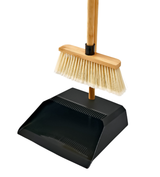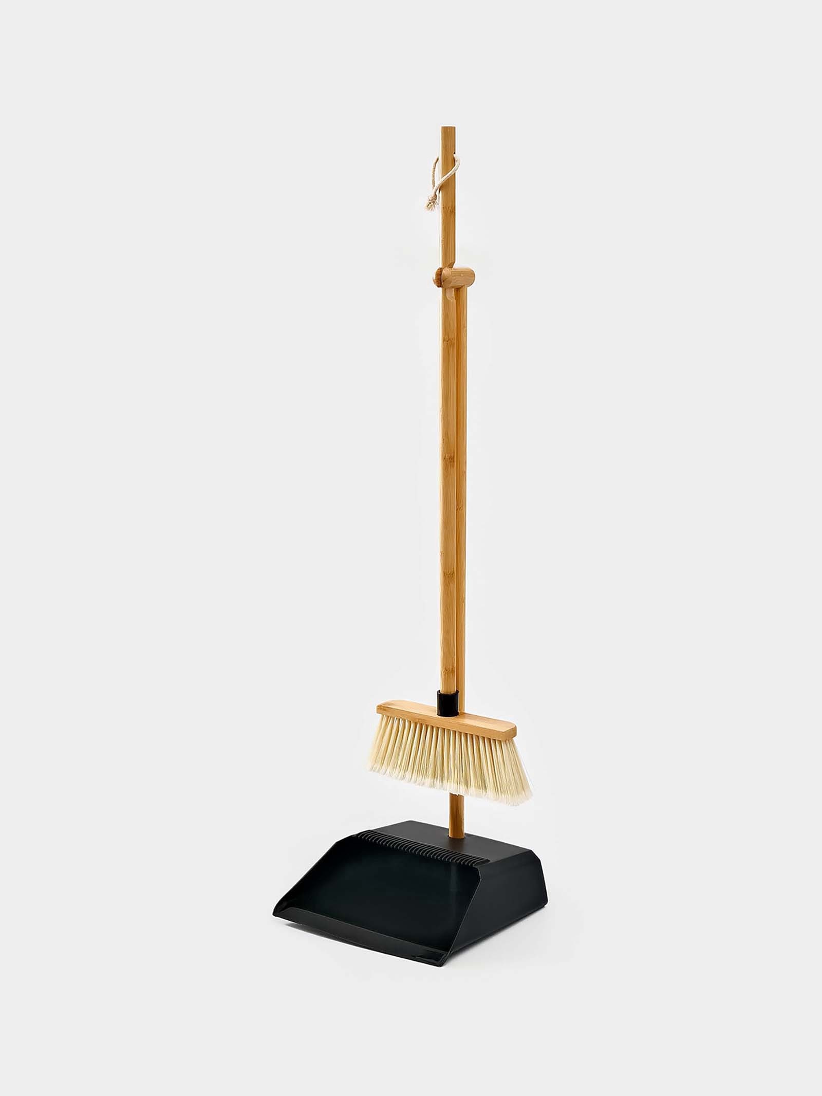 Щётка с совком Meli Loft — эргономичный комплект для быстрой уборки с бамбуковой ручкой и чёрной рабочей частью. Две предмета в наборе: щётка и совок с плотным прилеганием — собирают даже мелкий мусор без рассыпания. Длина ручек (78 см и 74,5 см) позволяет убирать стоя, не наклоняясь, а натуральный бамбук добавляет интерьеру лёгкую экологичную эстетику.
