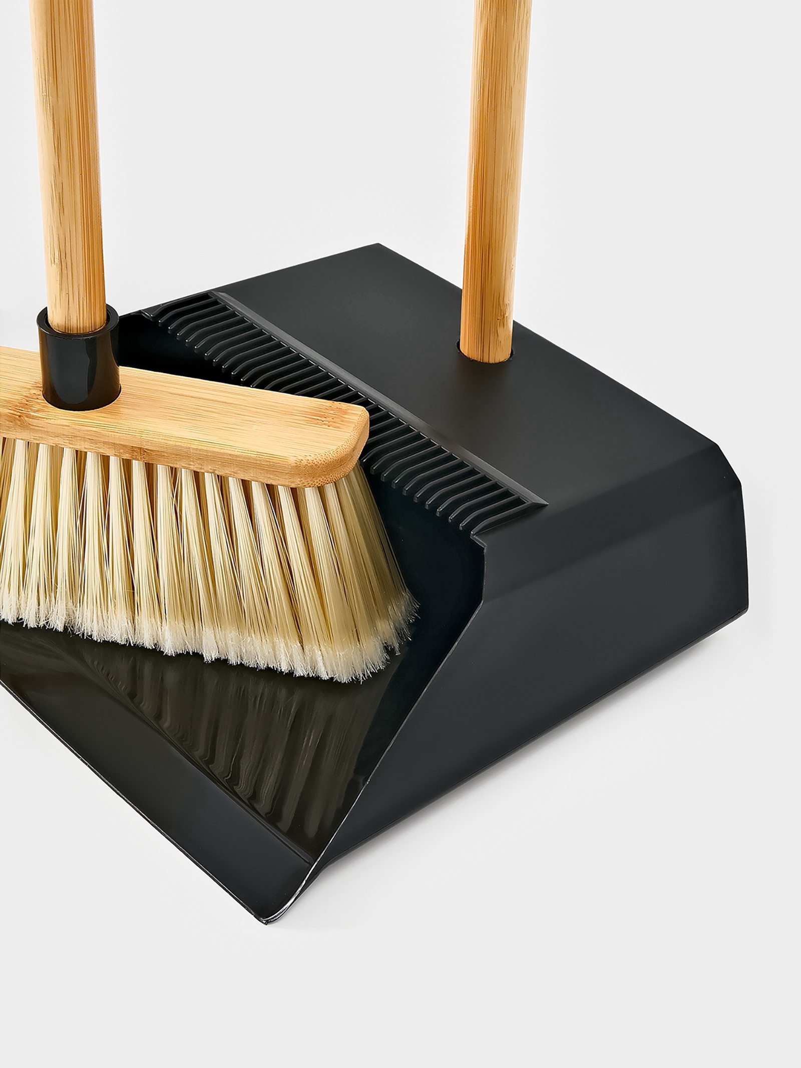 Компактное хранение: щётка вставляется в совок — не занимает место и всегда под рукой.