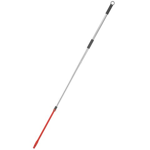 Раздвижная ручка для швабры в комплекте с гибкой штангой облегчат уборку в труднодоступных местах. Телескопическая система позволяет раздвинуть штангу до 160 см. Выполненная из прочной нержавеющей стали ручка устойчива к механическим воздействиям и коррозии. В комплекте с гибкой штангой 40 см ручка эффективно справится с любыми загрязнениями даже в труднодоступных местах. Аксессуар снабжен удобным механизмом, который фиксирует две его части в раздвижном положении, препятствуя самопроизвольному сложению. Также ручка дополнена пластиковым колпачком с кольцом для подвешивания.