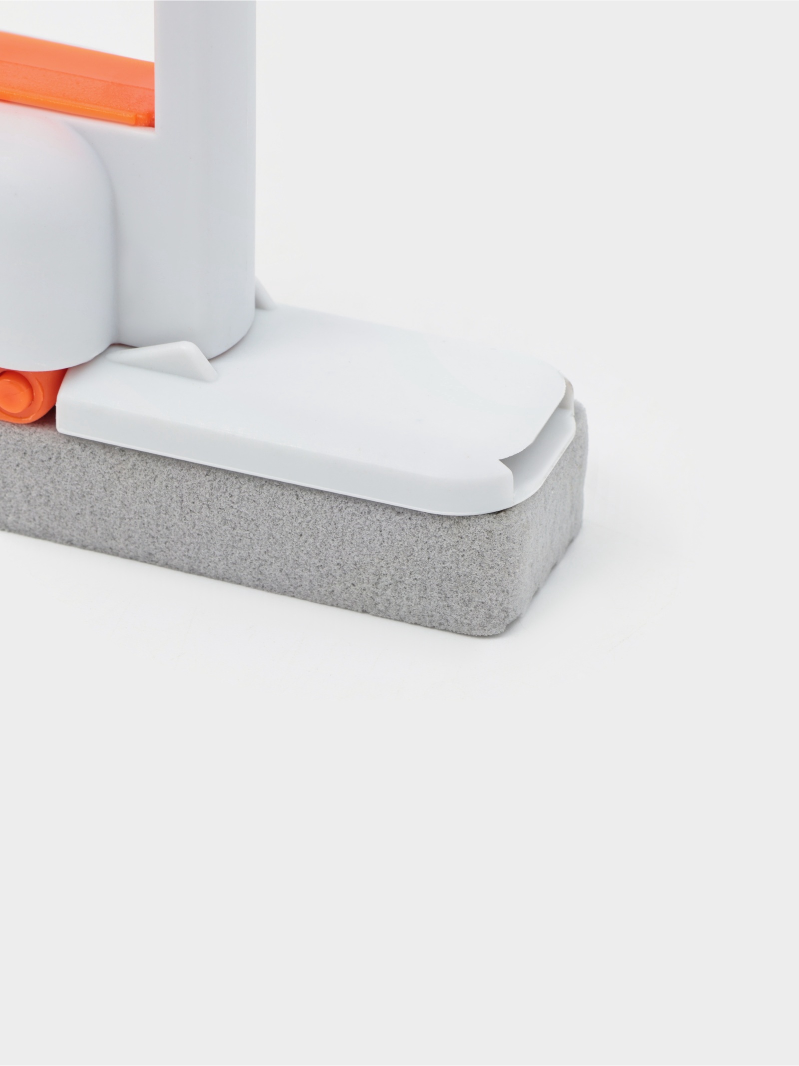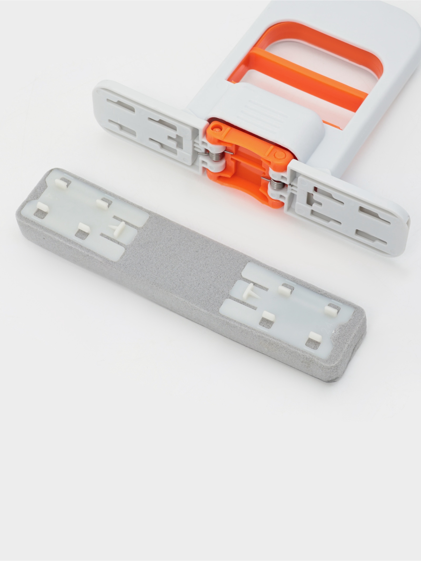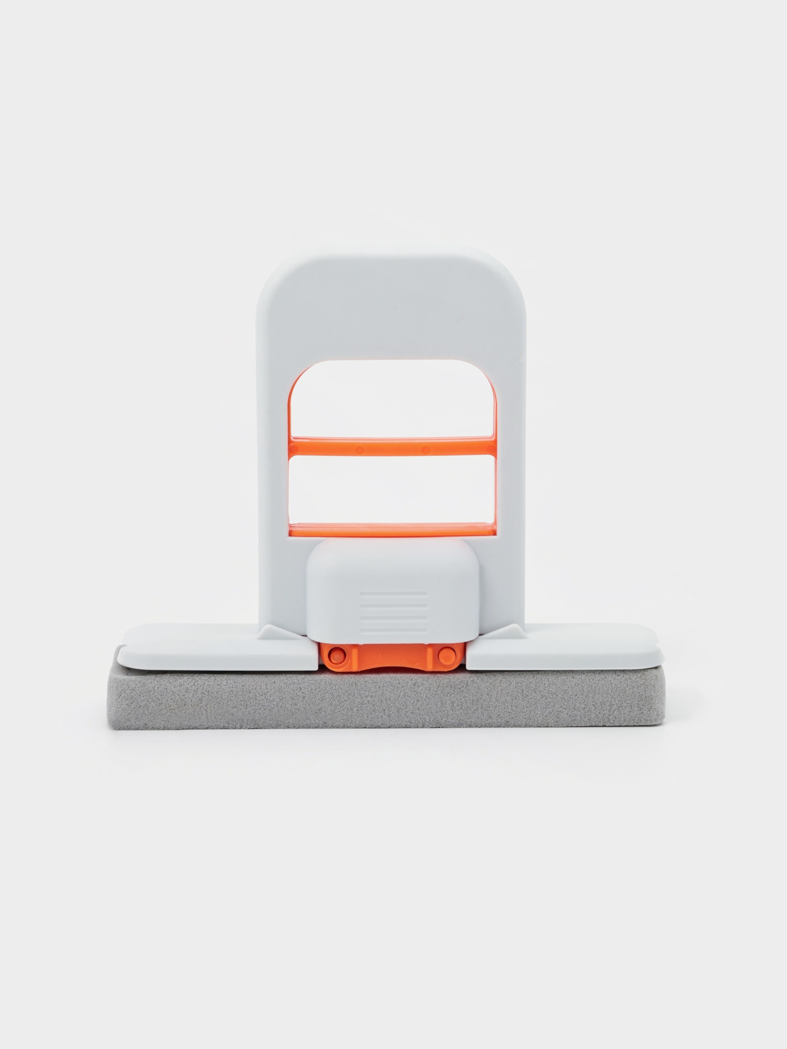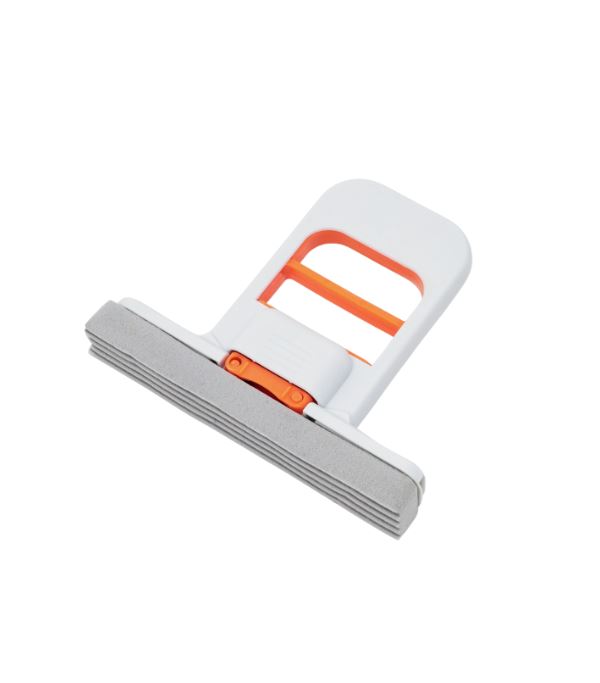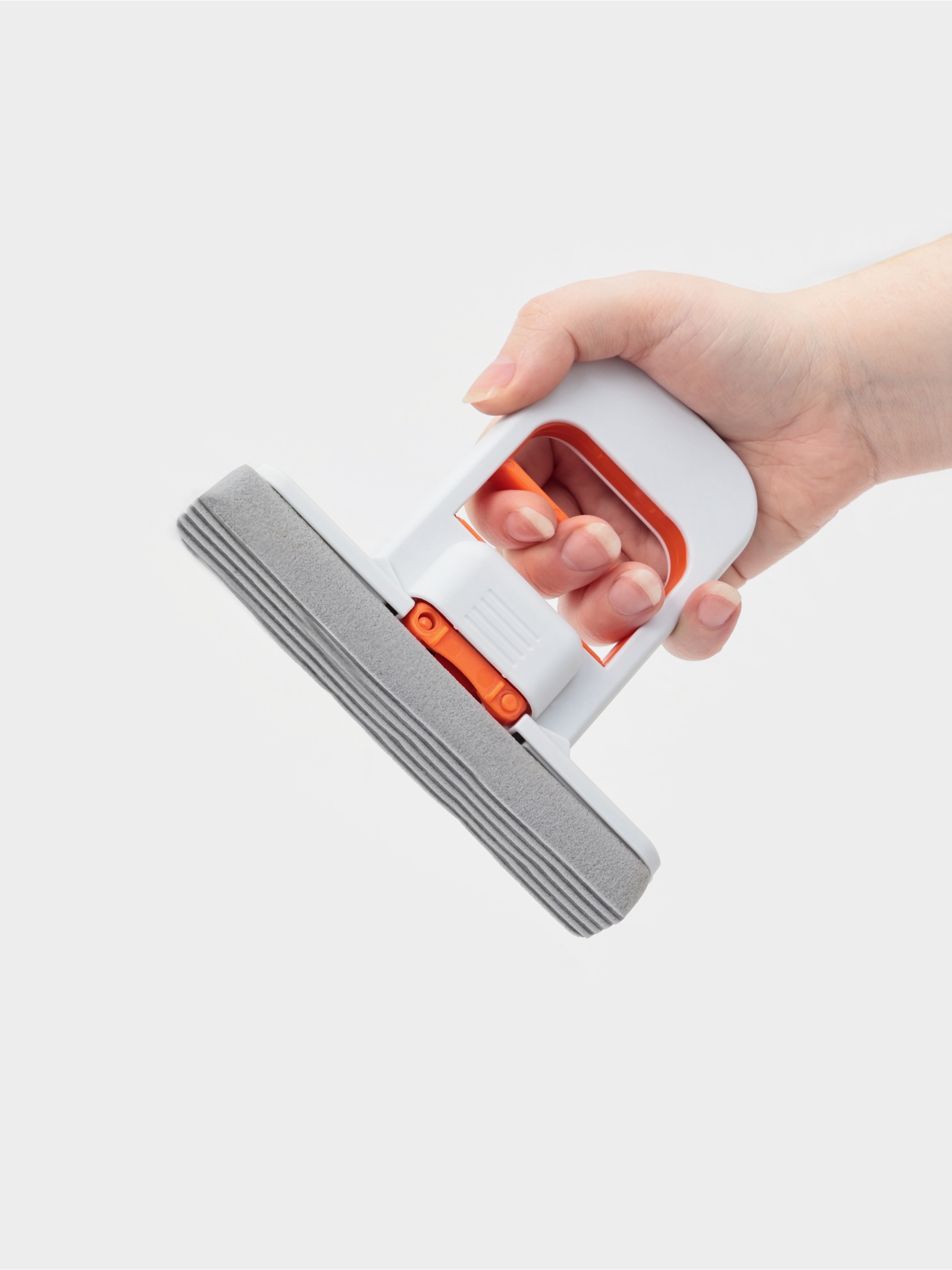 Эта компактная швабра создана для уборки и ухода за небольшими поверхностями. ПВА-губка впитывает влагу и загрязнения в несколько раз больше собственного объёма, а встроенный механизм отжимает насадку без контакта с водой руками. Яркий оранжевый цвет делает инструмент заметным — его не оставишь в углу и не потеряешь.