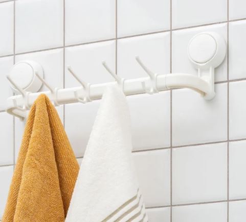 Универсальный держатель для полотенец с регулируемой длиной 30 и 60 см., многоразовые вакуумные присоски абсолютно безопасны для поверхностей в местах крепления и фиксируются без сверления. На поверхности пластика не остается следов влаги и белого налета. Подходит для размещения на гладких поверхностях: керамическая плитка, стекло, зеркало, металл, пластик.