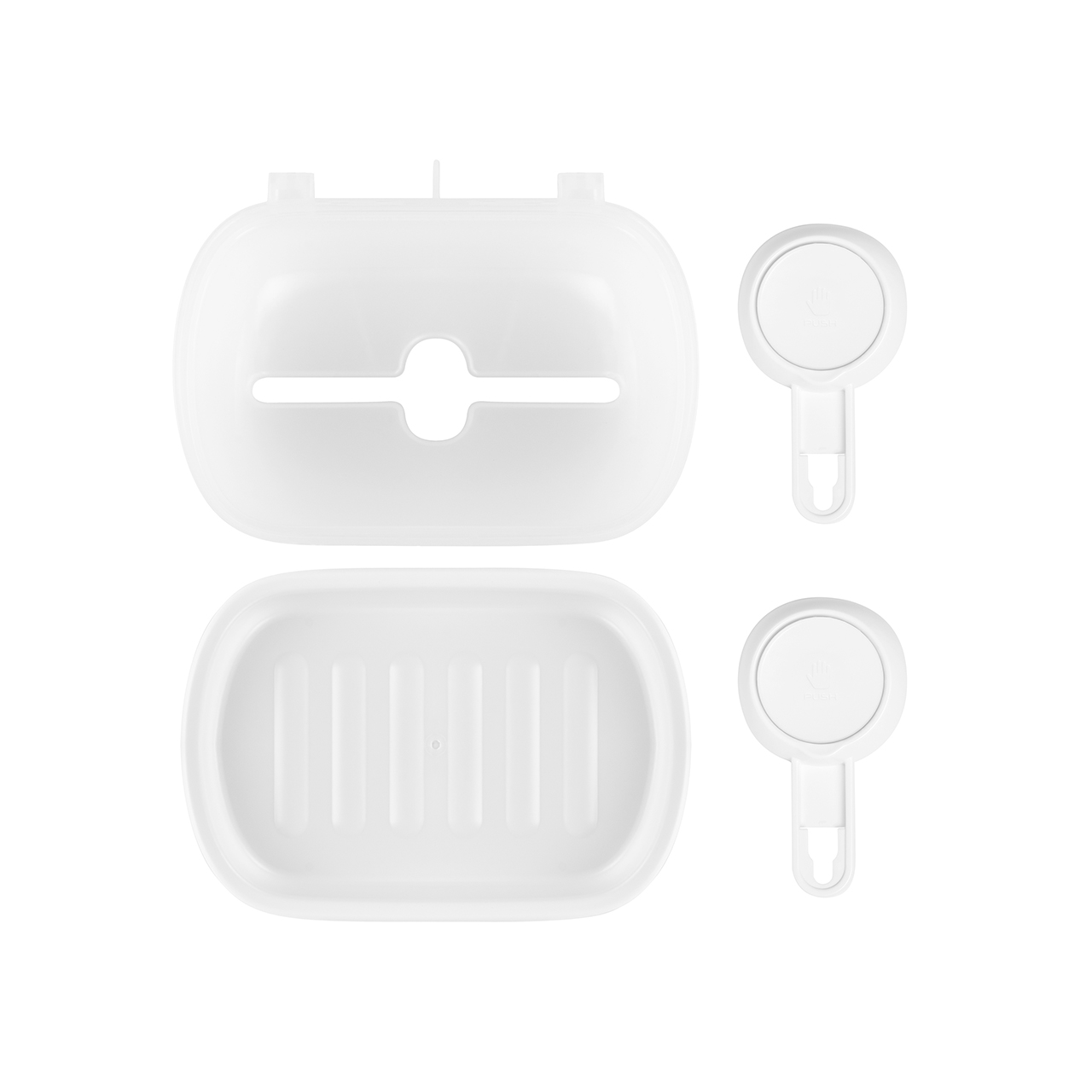 Многоразовые вакуумные присоски абсолютно безопасны для поверхностей в местах крепления и фиксируются без сверления. Сверху расположена специальная полочка для личных вещей. На поверхности пластика не остается следов влаги и белого налета. Подходит для размещения на гладких поверхностях: керамическая плитка, стекло, зеркало, металл, пластик.